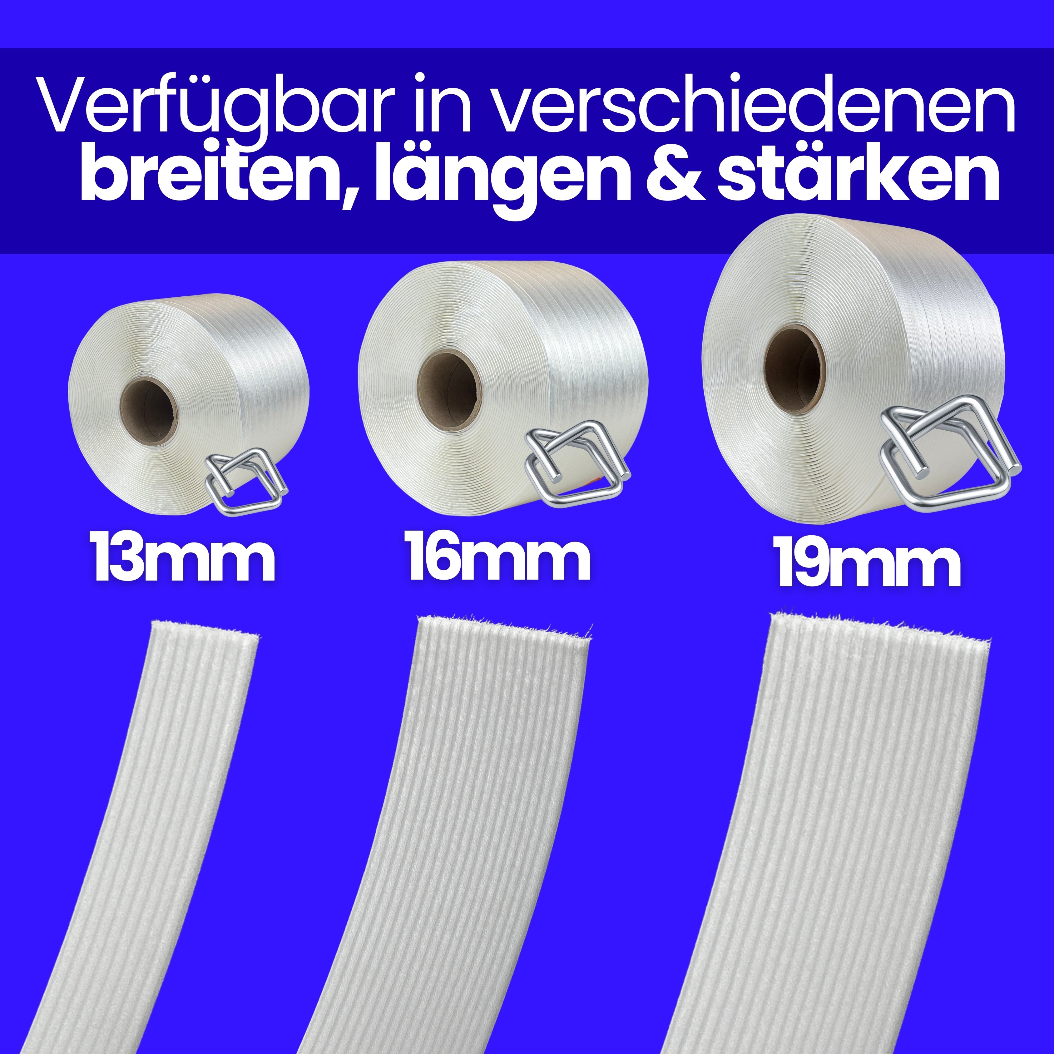 Premium Umreifungsband für professionelle Anwendungen Unser hochwertiges Umreifungsband bietet maximale Sicherheit und Stabilität bei Transport und Lagerung. Dank innovativer Fasertechnologie überzeugt es durch extreme Belastbarkeit und zuverlässige Performance – selbst unter anspruchsvollen Bedingungen. ✔ Extrem belastbar – entwickelt in Industriequalität für härteste Einsätze ✔ Maximale Sicherheit – zuverlässig auch bei schweren Packstücken ✔ Leichte Handhabung – einfach abrollbar und schnell einsatzbereit ✔ Wetterfest & UV-beständig – ideal für langfristige Lagerung und Outdoor-Einsätze ✔ Besser als herkömmliche PET-Bänder – dank hervorragender Rückdehnung (Memory-Effekt) bleibt das Band auch bei Transportbewegungen dauerhaft gespannt Das Premium-Umreifungsband eignet sich perfekt für Spedition, Lager, Industrie und E-Commerce. Eine zuverlässige Lösung für stabile und sichere Verpackung – überall dort, wo höchste Belastbarkeit gefordert ist.