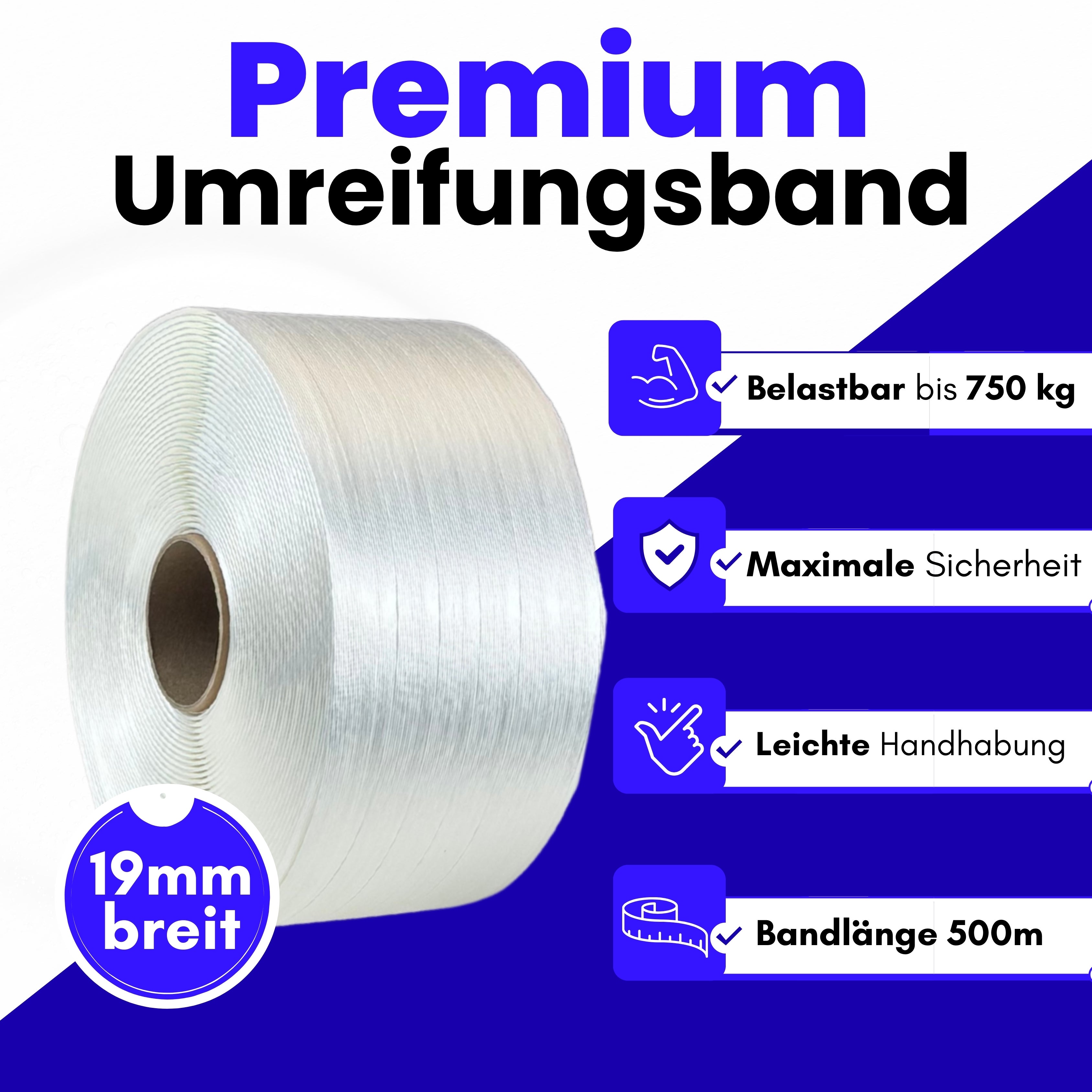 GPSR "Freiziel® Umreifungsband | Polyesterband 19 mm x 500m | PET-Band für Transportsicherung und Verpackung | Premium Qualität"