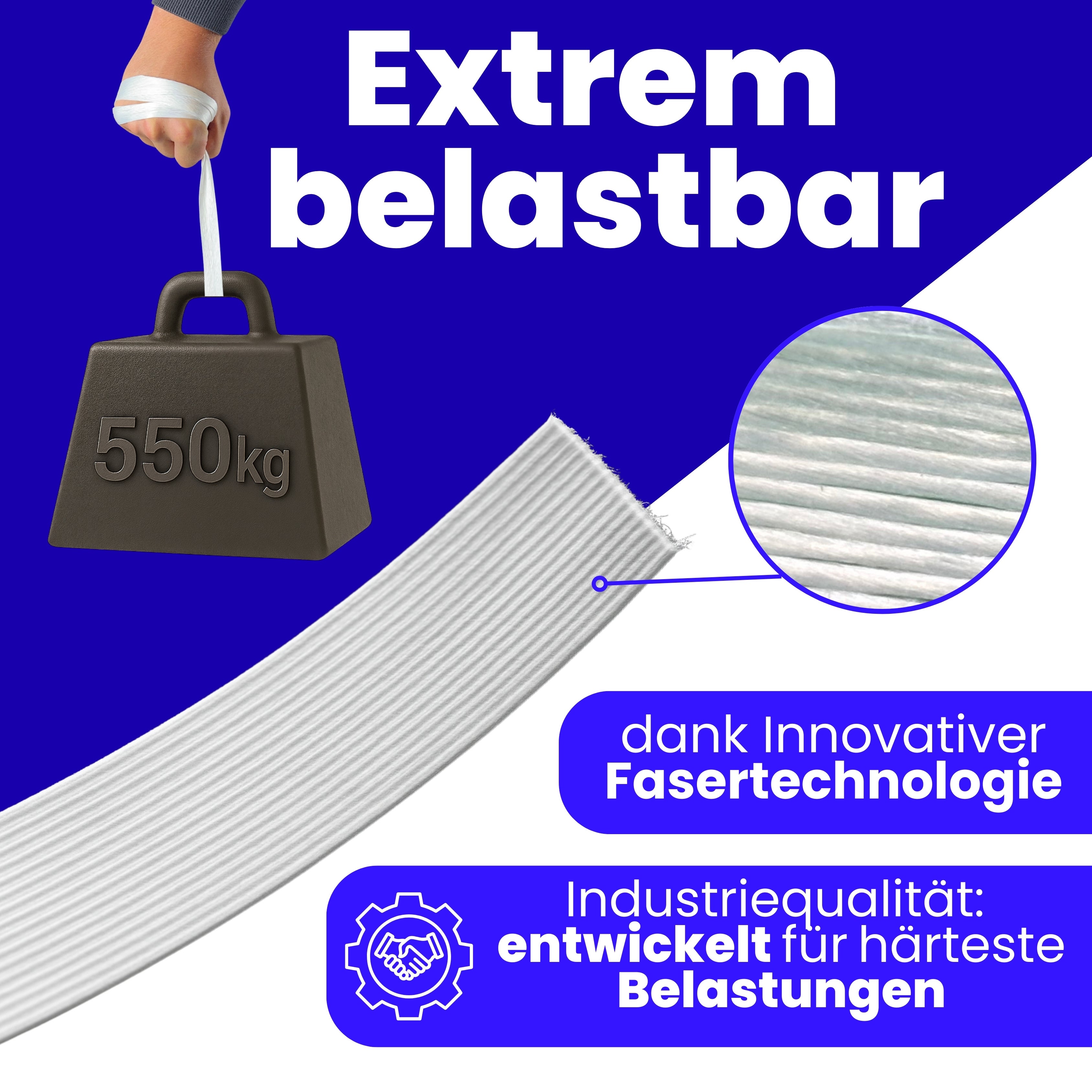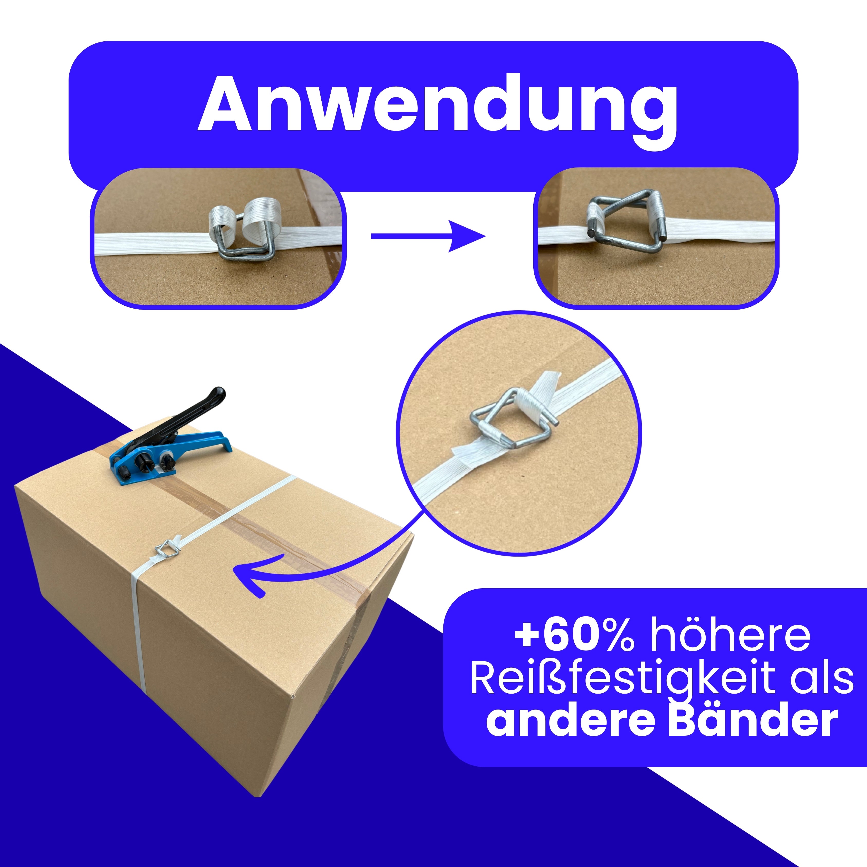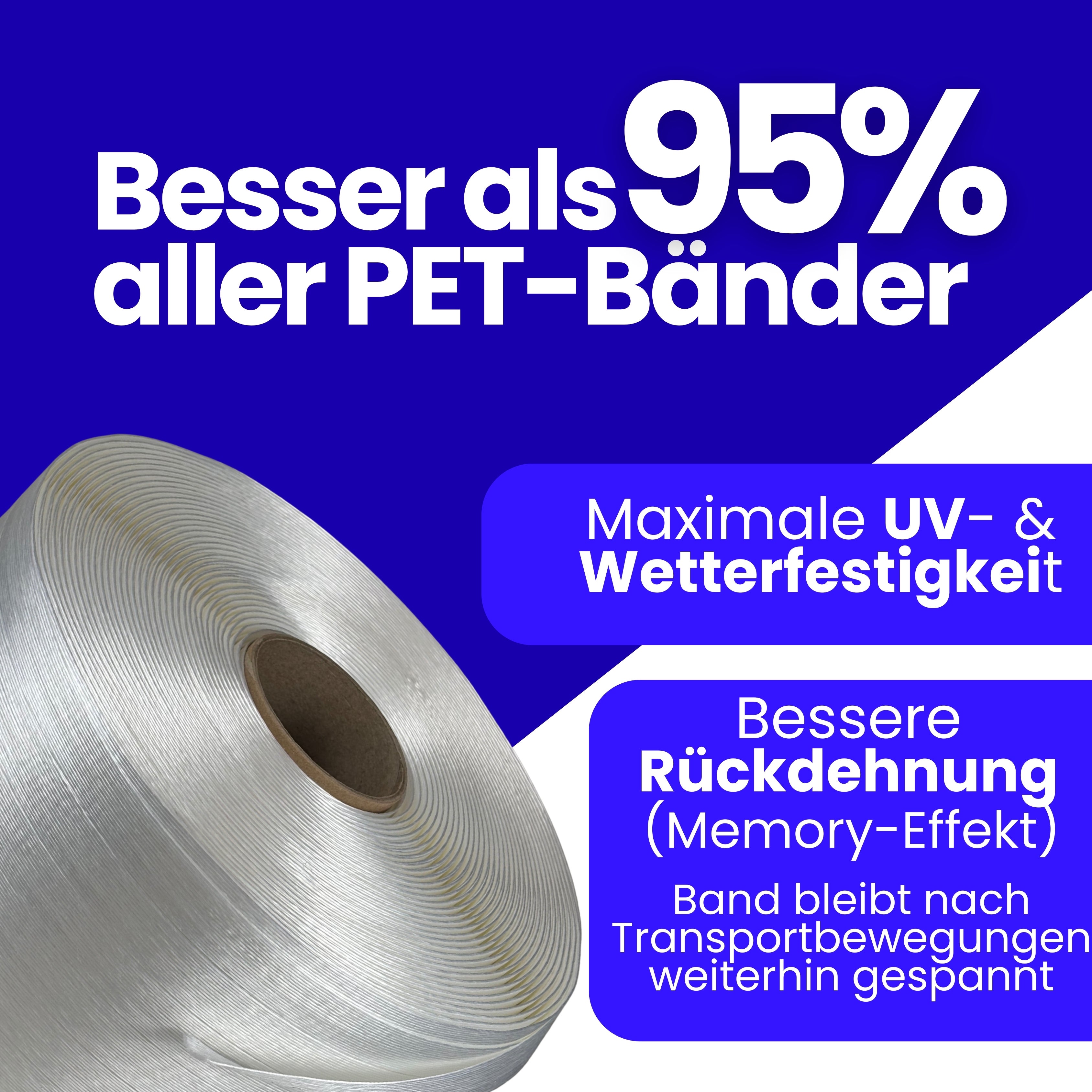 Premium Umreifungsband für professionelle Anwendungen Unser hochwertiges Umreifungsband bietet maximale Sicherheit und Stabilität bei Transport und Lagerung. Dank innovativer Fasertechnologie überzeugt es durch extreme Belastbarkeit und zuverlässige Performance – selbst unter anspruchsvollen Bedingungen. ✔ Extrem belastbar – entwickelt in Industriequalität für härteste Einsätze ✔ Maximale Sicherheit – zuverlässig auch bei schweren Packstücken ✔ Leichte Handhabung – einfach abrollbar und schnell einsatzbereit ✔ Wetterfest & UV-beständig – ideal für langfristige Lagerung und Outdoor-Einsätze ✔ Besser als herkömmliche PET-Bänder – dank hervorragender Rückdehnung (Memory-Effekt) bleibt das Band auch bei Transportbewegungen dauerhaft gespannt Das Premium-Umreifungsband eignet sich perfekt für Spedition, Lager, Industrie und E-Commerce. Eine zuverlässige Lösung für stabile und sichere Verpackung – überall dort, wo höchste Belastbarkeit gefordert ist.