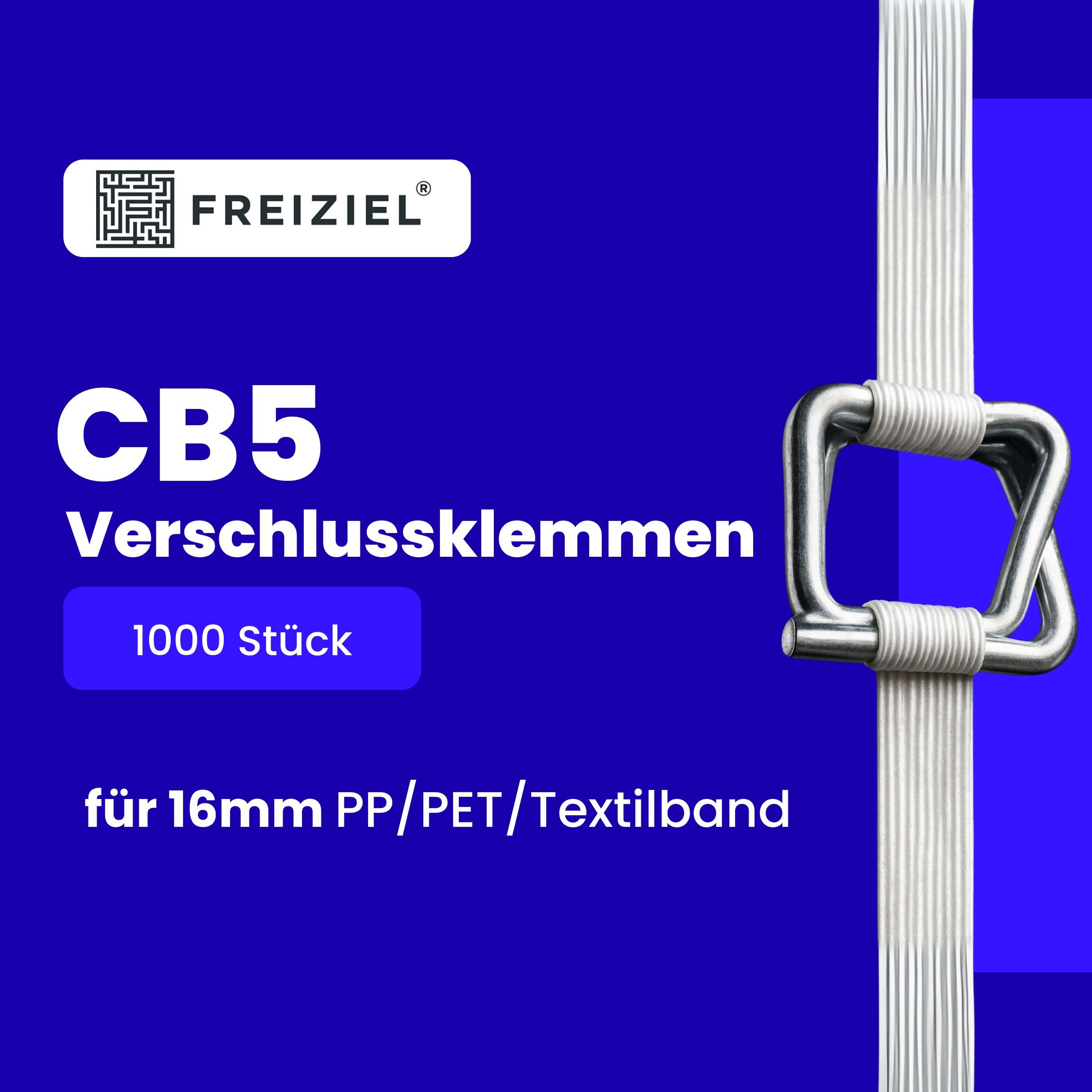 GPSR "Freiziel® Umreifungsband Set | Polyesterband 16mm/850m + CB5 Verschlussklemmen | PET-Band Set für Transportsicherung und Verpackung | Premium Qualität"